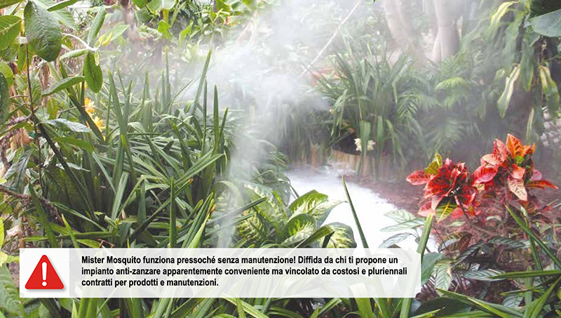 Mister MOSQUITO è un sistema innovativo di nebulizzazione antizanzare, che ha raggiunto una vasta diffusione in tutta Europa grazie alla sua automazione completa che consente una disinfestazione programmata di parchi e giardini.